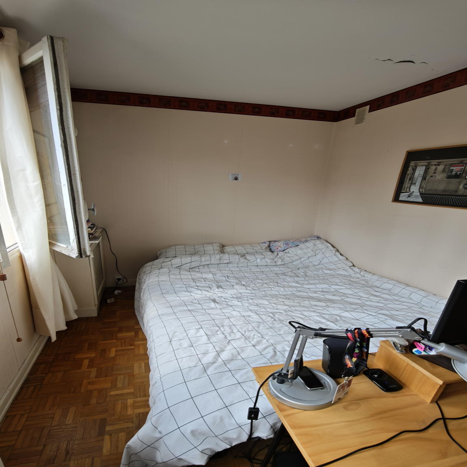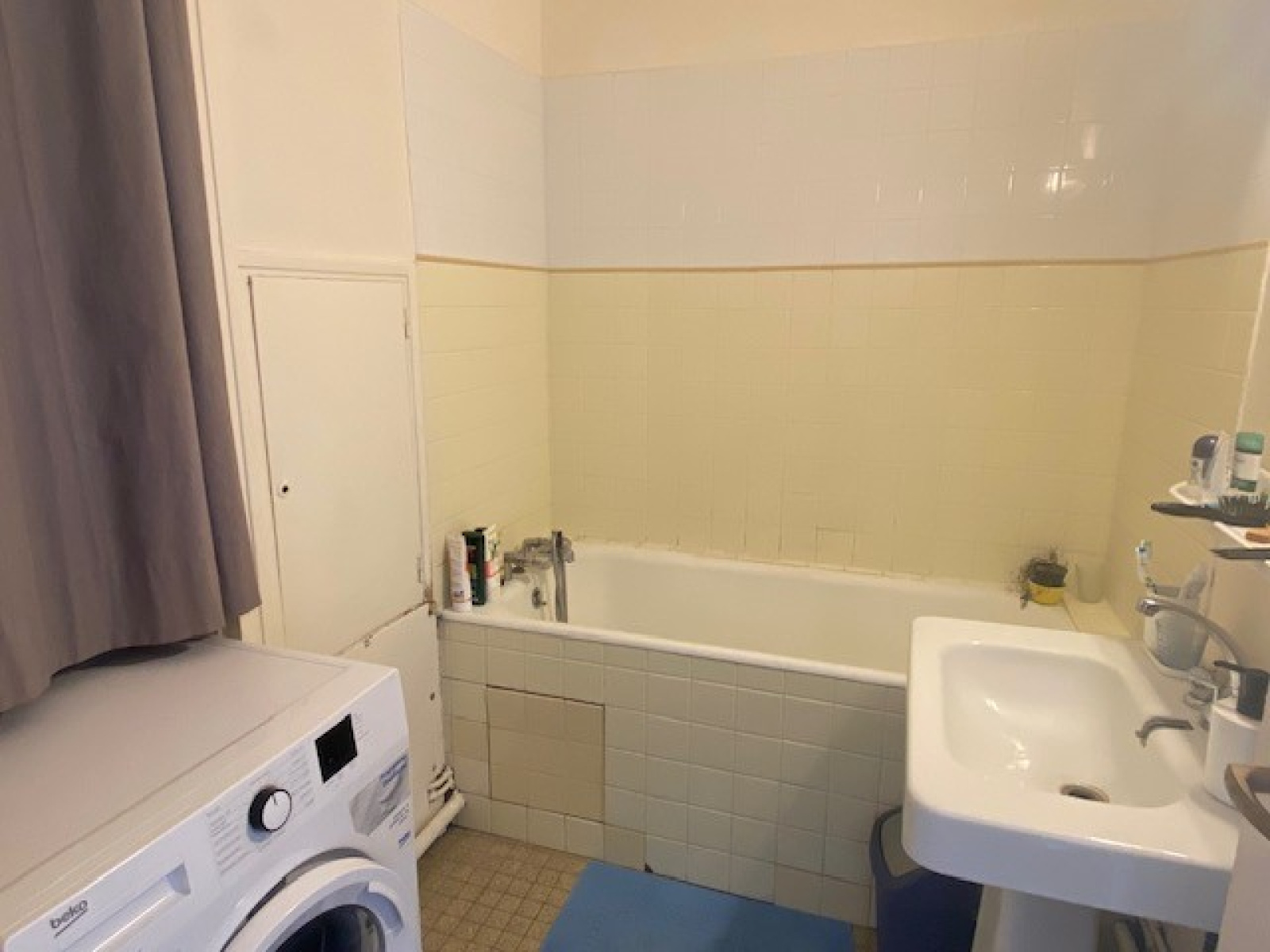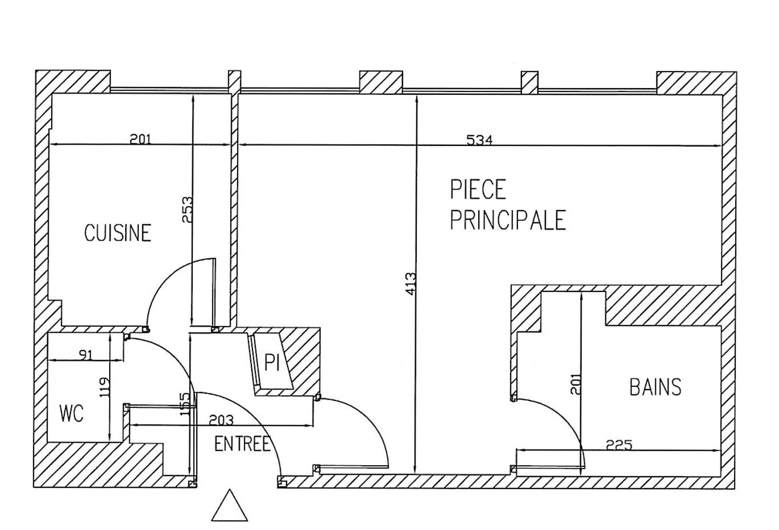 Séjour avec coin chambre. Petit 2 pièces possible. La cuisine pourrait être ouverte. wc séparés, salle de bains.