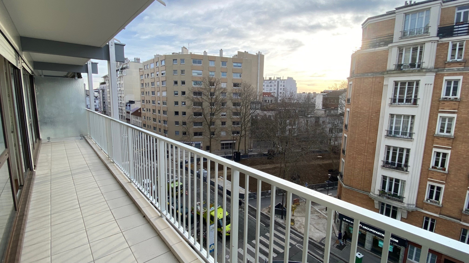 Au 5ème étage, agréable 3/4 PIECES baigné de lumière, grand balcon plein sud, jolie vue sur jardin en cours d'aménagement.